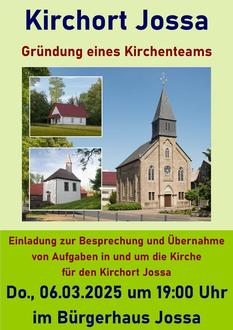 | 19.00 Uhr | Besprechung und Übernahme von Aufgaben für den Kirchort Jossa |
