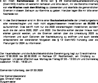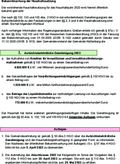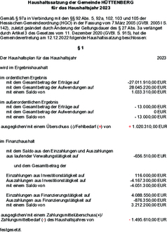 Haushaltssatzung der Gemeinde Hüttenberg für das Haushaltsjahr 2023