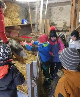 Die Vorschulkinder der Kita Baumgarten haben den Naturhof Teipen in Vollnkirchen besucht.