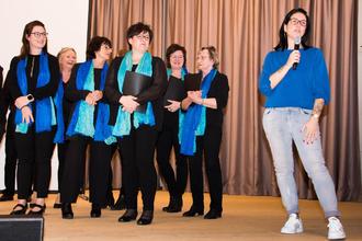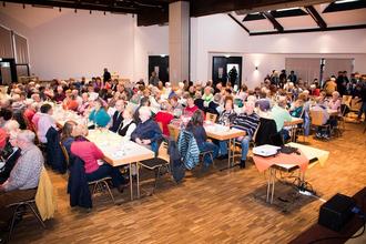 Ob es nun tatsächlich am Musikbeitrag des gemischten Chores Reiskirchen, dem Vortrag „Glück des Älter werdens“, dem Auftritt der Bousseldande oder den tollen, selbstgebackenen Kuchen (verkauft durch den Förderverein der Diakoniestation) lag, dass das Bürgerhaus in Rechtenbach am Samstag bis auf den letzten Platz gefüllt war, werden wir wahrscheinlich nicht erfahren. Vielleicht hatten auch alle die da waren einfach mal wieder Lust sich mit anderen zu treffen und auszutauschen? Oder vielleicht dachten auch einige, Udo Jürgens kommt persönlich und singt „Aber bitte mit Sahne“?