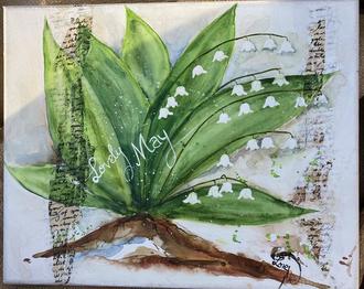 Das Maiglöckchenbild gestalten wir auf Leinwand in Klebe-, Spachtel- und Maltechnik.