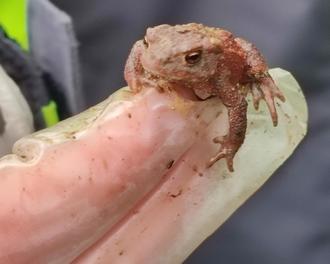 Eine Mini-Erdkröte, gerettet im Amphibien-Projekt des NABU Hüttenberg
