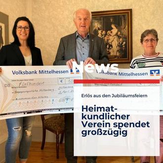 Jeweils 500 Euro spendete der Heimatkundliche Verein Hüttenberg an das Hospiz Mittelhessen und an die Seniorenarbeit Hüttenberg.