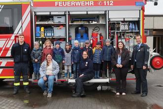 Am darauf folgenden Tag kamen die 8 Kinder mit ihren Erzieherinnen ins Rechtenbacher Feuerwehrhaus. Nach einem Rundgang wurde ein Rauchmelder ausgelöst und ein Brandschutzerzieher verwandelte sich nach und nach in einen richtigen Feuerwehrmann, indem er seine Schutzausrüstung anlegte. Um den Kindern die Angst vor den Geräuschen eines Atemschutzgerätes zu nehmen, wurde auch dieses angelegt und die Fluchthaube erklärt. Als krönender Abschluss wurden die Kinder mit dem Feuerwehrauto zurück zum Kindergarten gebracht.