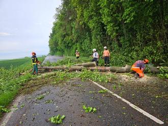 Auf der L3360 zwischen Rechtenbach und Wetzlar lagen mehrere Bäume. Hier war auch die Feuerwehr Wetzlar zusätzlich mit im Einsatz.