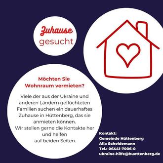 Die Gemeinde Hüttenberg unterstützt die hier in Notunterkünften untergebrachten Geflüchteten bei ihrer Suche nach Wohnungen, die sie dauerhaft anmieten können. Es handelt sich in erster Linie um Menschen aus der Ukraine, aber auch aus weiteren Ländern. Die Anmietung erfolgt direkt durch die Geflüchteten, die Gemeinde unterstützt lediglich bei der Vermittlung.