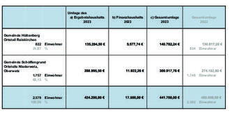 Die vorläufige Umlageberechnung für das Haushaltsjahr 2023 wurde ermittelt auf der Grundlage der Einwohnerzahlen zum 30. Juni 2022 und wird wie folgt festgesetzt: