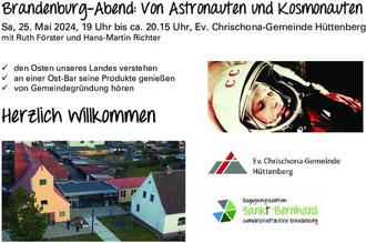 | 19:00 Uhr | Brandenburg-Abend mit Hans-Martin Richter und Ruth Förster |