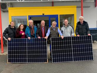 Die Aktiven der Hüttenberger Klimainitiative mit zwei Solar-Panels