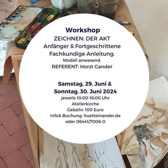Der 2-tägige Kurs im Juni richtet sich an alle, die sich mit dem Thema Aktzeichnen beschäftigen wollen. Sowohl Fortgeschrittene als auch Beginner finden hier Gelegenheit in moderierter Begleitung ihre individuelle Kenntnis zu erweitern, bzw. neue zu bilden. Materialien: Zeichenblock ab A 3, verschiedene Zeichenstifte unterschiedlicher Härte, gerne Farbkreide, Wasserfarben, Pinsel, verschiedene Zeichenmaterialien.
