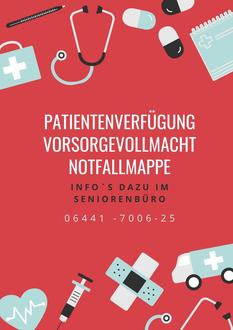 Informationsmaterial zu Vorsorgevollmacht, Patientenverfügung und Betreuung.
