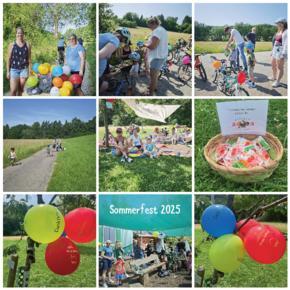„On Tour mit dem Fahrrad“ unter diesem Motto fand unser diesjähriges Sommerfest am 14.06.2025 statt. Am Bauernhof ging es um 10 Uhr los zur 1. Station. Dort wurde die Verkehrssicherheit der Fahrräder geprüft. Mit einem Luftballon am Fahrrad ging es weiter zur 2. Station. Die Kinder konnten ihre Fahrräder mit Speichenperlen/Reflektoren und Bändern verschönern. Weiter ging es zur letzten Etappe, wo die Kinder einen Parkour befahren konnten und sich an der Verpflegungsstation mit einer Banane und Traubenzucker stärkten. Zum Abschluss gab es im Waldkindergarten kühle Getränke, leckere Hot Dogs und ein schönes Beisammensein.