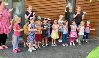Im Gepäck hatten sie einen bunten Farbentanz und drei fröhliche Lieder, bei denen alle fleißig mitklatschen und zum Teil auch mitsingen konnten.
