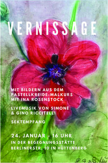 Zu sehen sind die im letzten Malkurs entstandenen Bilder mit der Künstlerin Ina Rosenstock. Abgerundet wird das Programm durch einem Sektempfang sowie Livemusik durch die Familie Riccitelli.