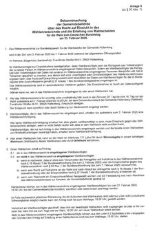 Bekanntmachung der Gemeindebehörde über das Recht auf Einsicht in das Wählerverzeichnis und die Erteilung von Wahlscheinen für die Wahl zum Deutschen Bundestag am 23. Februar 2025