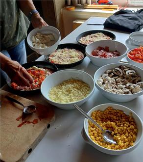 Unsere heutige Aktion "Pizza backen und basteln" war super. Es wurde gemischt, geknetet, geschnippelt, geschnitten, gestempelt, geklebt und gestaltet. Alle hatten Spaß und die Ergebnisse waren lecker und sehen wunderschön aus. Das kann jeder auf den Fotos sehen. Alle Kinder und die Landfrauen sind sehr zufrieden nach Hause gegangen.