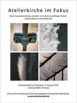 Nach einer Einführung in Technik und Aufgabenstellung werden wir Details, ungewöhnliche Perspektiven und unbekannte Ecken der Atelierkirche fotografieren. Die unbearbeiteten Bilder schauen wir uns an und diskutieren über passende Motive für Bildserien, die nach Inhalt, Form, Farbe zueinander passen und eine stimmige Sequenz ergeben.