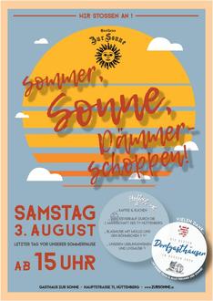 Für Samstag, den 3. August hat Sonnewirts zum Hoffest „Sommer, Sonne, Dämmerschoppen“ eingeladen, um gemeinsam mit den Gästen und Geschäftspartnern auf die Auszeichnung anzustoßen. Ab 15 Uhr gibt es Kaffee und Kuchen. Die erste Mannschaft des TV 05/07 Hüttenberg wird vor Ort sein und selbst produziertes Eis gegen eine Spende für die Mannschaftskasse verkaufen. Für die Kinder wird eine Hüpfburg aufgebaut.