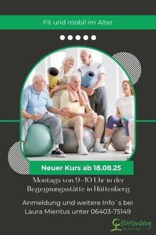 Am Montag, den 18.08.2025, beginnt der beliebte Gymnastikkurs in der Begegnungsstätte wieder - pünktlich nach den Sommerferien. Der Kurs findet immer montags von 9:00 bis 10:00 Uhr statt und richtet sich insbesondere an ältere Menschen, die in Bewegung bleiben oder wieder sanft einsteigen möchten. Nach Anmeldung und gegen einen kleinen Unkostenkostenbeitrag kann jedermann gerne einsteigen.