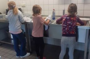 In der großen Küche wurden mit viel Eifer und Spaß Frikadellen, zwei Kartoffelsalate und eine Nachspeise zubereitet. Die Kinder haben begeistert geschnibbelt, gemischt und geknetet.