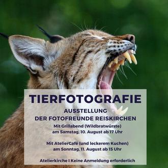 Am Sonntag, dem 11. August 2024 lädt das AtelierCafé gemeinsam mit den Fotofreunden Reiskirchen in der Zeit von 15:00 Uhr bis 18:00 Uhr zur Ausstellung „Tierfotografie“ in die Atelierkirche bei Kaffee und leckerem Kuchen ein.