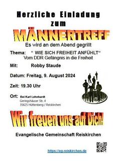 Freitag, 09.08.2024 zum Männertreff um 19:30h