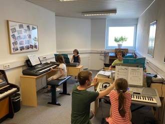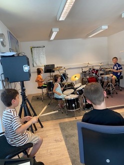 In den Ferienpass-Workshops konnten die Kinder unter professioneller Anleitung in die Welt der selbstgemachten Musik eintauchen. In kleinen Gruppen konnten die Kids im Bereich Schlagzeug, Gitarre, Keyboard/Klavier und Geige die Instrumente kennenlernen, ausprobieren und am Ende sogar schon einige Rhythmen und kleine Lieder selbst spielen.