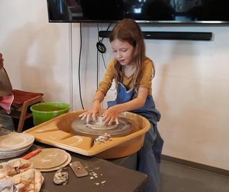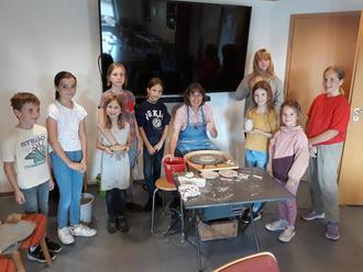 Beim" Kreativen Töpfern" lernten die Ferienpass-Kinder das Arbeiten an der Töpferscheibe kennen und probierten es anschließend selbst aus.