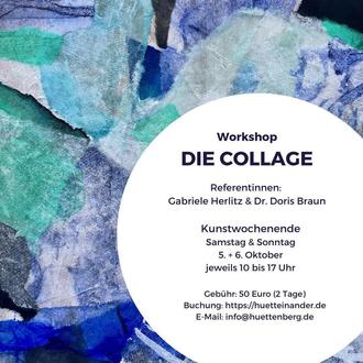 Auf einem festen Untergrund werden Materialien wie Zeitungen, Ausschnitte von Zeitschriften, Bändern, Briefen, Fotografien, zusammengesetzt und aufgeklebt.