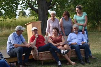 Die Moderatoren im Gespräch mit den Aktiven aus dem zweitplatzierten Dorf Maden