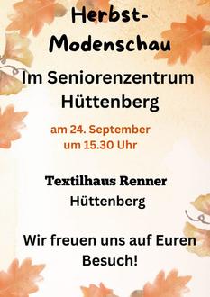Am Mittwoch, den 24. September, um 15:30 Uhr findet in der Begegnungsstätte des Seniorenzentrums Hüttenberg (Berliner Straße 10, Hüttenberg) wieder die beliebte Herbstmodenschau statt.