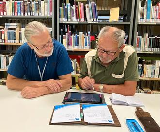 Seit dem Start der DigiLotsen Ende August kommt Herbert Glomb regelmäßig in die Sprechstunden nach Rechtenbach und Hüttenberg. Er ist bereits 86 Jahre alt und hat erst vor kurzem ein Tablet von seiner Tochter geschenkt bekommen. Hier lässt er sich von Dieter Olms gerade zeigen, wie man Emails schreiben kann; auch Whats App hat er bereits installiert und übt zu Hause fleißig weiter. Herr Glomb sagt, es sei ihm wichtig sich damit zu befassen um mit der Tochter Kontakt halten zu können, wenn sie zum Beispiel im Urlaub ist“. Erst habe er gedacht, das brauche er nicht mehr zu lernen - jetzt ist er aber sehr froh darüber und freut sich, wenn er Bilder und Nachrichten geschickt bekommt und dankt den DigiLotsen für die kostenlose Beratung.