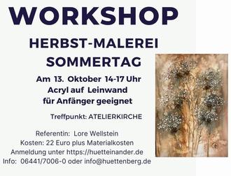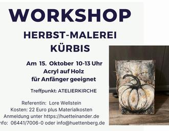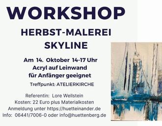 Im Oktober finden noch einmal drei kleine Kunstworkshops mit Lore Wellstein im Atelier statt. Diese Kurse sind auch für Anfänger*innen geeignet. Es entstehen Materialkosten zwischen 10 und 17 Euro.