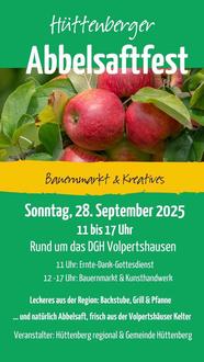 Mit dem Abbelsaftfest wirbt die Initiative "Hüttenberg Regional“ gemeinsam mit der Gemeinde Hüttenberg seit über zwanzig Jahren für den Verzehr von landwirtschaftlichen Erzeugnissen aus der Region.