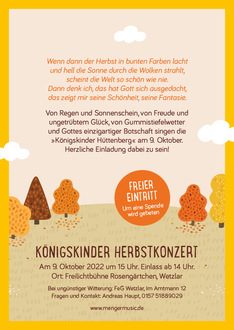 | um 15.00 Uhr: | Herbstkonzert des Kinderchores „Königskinder“ |