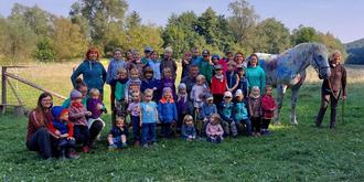 Am 19. September war es endlich wieder soweit und Tanja Hirscher besuchte uns mit ihrer Stute Pandora im Waldkindergarten. Die Freude war riesengroß. Während wir frühstückten, bekamen wir von Tanja eine kurze Einweisung, wie man sich in der Nähe eines Pferdes verhält und sie beantwortete viele Fragen der Kinder.