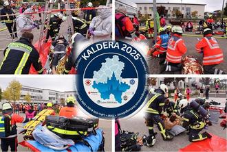 Auch Bürgermeister Oliver Hölz machte sich ein persönliches Bild der Großübung. Neben Vertretern der heimischen Presse berichtete auch der Hessische Rundfunk mit einem Fernsehteam von der Katastrophenschutzübung KALDERA 2025.