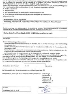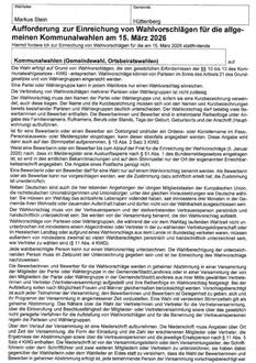 Aufforderung zur Einreichung von Wahlvorschlägen für die allgemeinen Kommunalwahlen am 15. März 2026