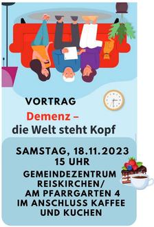 Am Samstag, den 18. November um 15 Uhr findet im Gemeindezentrum (Am Pfarrgarten 4) in Reiskirchen erneut der Vortrag zum Thema Demenz statt.