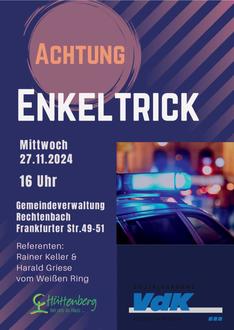 die Gemeinde Hüttenberg und der VdK OV Hüttenberg laden Sie herzlich ein zu einem wichtigen Informationsnachmittag zum Thema „Enkeltrick und andere Betrugsmaschen“ am