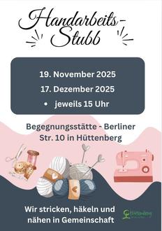 Nach dem gelungenen Start geht die „Handarbeitsstub“ in der Begegnungsstätte Hüttenberg nun in die nächste Runde!