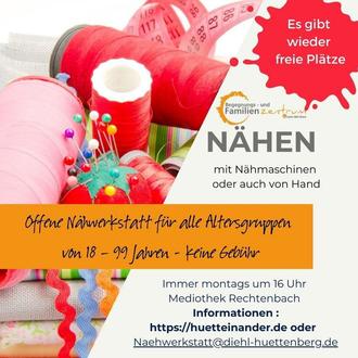 In der offenen Nähwerstatt, sind alle willkommen, die mit diesem neuen Hobby beginnen, und diejenigen, die eigene Näh-Projekte gerne in Gesellschaft fertigstellen möchten.
