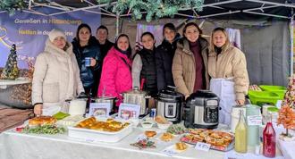 Es duftet herrlich, es brodelt im Topf und die Auslagen sehen allesamt köstlich aus: So schmeckt die Ukraine. Krautwickel, Borschtsch, Piroge und Pfannkuchen. Alles ist hausgemacht und darf vor Ort verkostet werden. Da können viele Marktbesucher nicht widerstehen. Zum Glück, denn jeder Einkauf ist eine Spende, die direkt in die Ukraine geht.