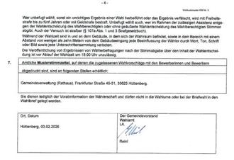 Wahlbekanntmachung für die Kommunalwahlen in der Gemeinde Hüttenberg am 15.03.2026