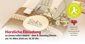 In vorher nicht bekannter Runde verbringt man mit weniger vertrauten oder vertrauten Menschen einen wunderbaren Abend im Gemeindehaus mit gemeinsamen Abendessen, teils im Gemeindehaus, teils bei einzelnen Gastgebern (deshalb „running dinner“).