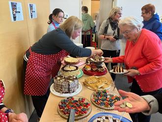 Und auch in Hüttenberg gab es etwas Neues : Ein deutsch-ukrainisches Team hat fleißig Kuchen gebacken und am Sonntag in der Begegnungsstätte verkauft. Hier konnten wir uns auch über viele Besucher aus verschiedenen Ortsteilen freuen; die Torten haben fantastisch geschmeckt, die Deko war frühlingshaft, die Sonne hat den Raum erhellt und so entstanden viele schöne Begegnungen und Gespräche untereinander.