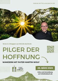zum „Bibelwandern“ mit Pater Martin. Nach einem kurzen Morgenlob in unserer Kirche St. Sebastian starten wir mit Pater Martin, einem Bibelvers und einer motivierten Wandergruppe unseren Weg Richtung Taufstein. Wir haben Gelegenheit uns zu zweit, zu dritt oder in der großen Gruppe auszutauschen und die Gemeinschaft in der Natur zu genießen. Für das leibliche Wohl ist gesorgt, eine kleine Rucksackverpflegung wird jedoch empfohlen. Über eine zahlreiche Teilnahme freut sich das Planungsteam und der Heilige Sebastian.
