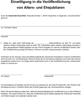 Alters- und Ehejubiläen dürfen ab dem neuen Jahr 2025 leider nicht mehr ohne vorherige schriftliche Einwilligung veröffentlicht werden. Ohne ihre vorherige Einwilligung dürfen wir Sie, aus datenschutzrechtlichen Gründen nicht mehr im gemeindlichen Mitteilungsblatt erwähnen.