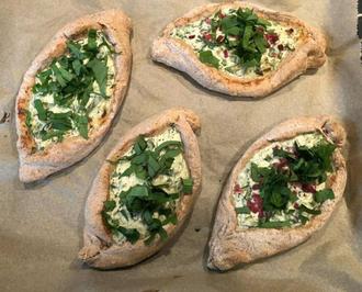 Unser Teammitglied Viktoria hat das Rezept für Bärlauch-Ricotta-Pide aus der Zeitschrift „Köstlich vegetarisch“ -Ausgabe März/April 2022 nachgebacken. Dabei hat sie einen Teil der Schiffchen nach vegetarischem Original-Rezept zubereitet und dem anderen Teil noch Schinkenwürfel hinzugefügt. Das Ergebnis sah nicht nur optisch gut aus sondern schmeckte auch sehr lecker!