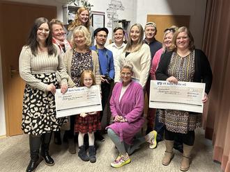 Die Theatergruppe Uttrichshausen hat im Rahmen ihrer letzten Theateraufführungen an die Vorsitzenden der Fördervereine der Grundschule Uttrichshausen und der Kita Sonneninsel Heubach Spendenschecks in Höhe von je 300,-€ überreicht.